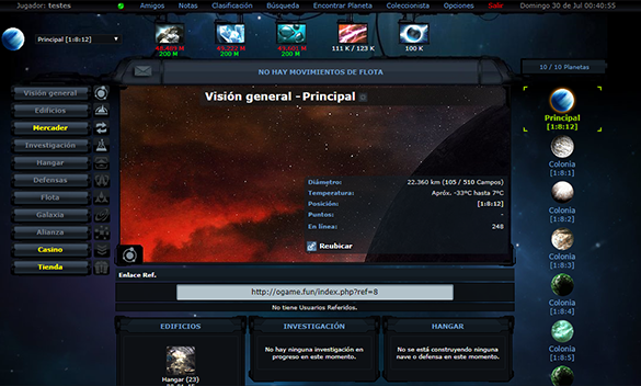 OGame es un juego de estrategia localizado en el espacio. Miles de jugadores por todo el mundo compiten al mismo tiempo.